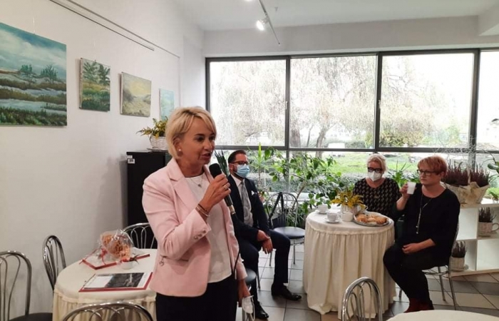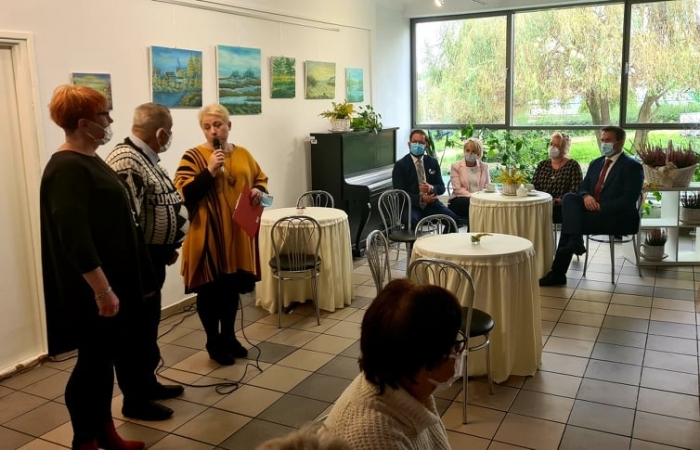 „Malować emocjami” – to tytuł wystawy prac przygotowanych przez pensjonariuszy Dziennego Domu Pomocy Społecznej w Będzinie. W dzisiejszym wernisażu uczestniczyli: Sebastian Szaleniec – Starosta Będziński, Anna Drzewiecka – II Wiceprezydent Miasta Będzina oraz Dyrekcja Miejskiego Ośrodka Pomocy Społecznej w Będzinie w osobach Patrycja Gruca – Hołota - dyrektor oraz Kamil Dybich – zastępca dyrektora. Swoje prace zaprezentowali Państwo: Marzena Radzimska, Arkadiusz Kaczmarczyk oraz uczestniczący osobiście Alfred Walczak. Wśród eksponowanych dzieł pojawiły się również prace nieżyjącego już Pana Józefa Kaczmarka.