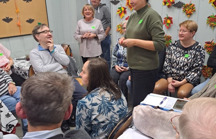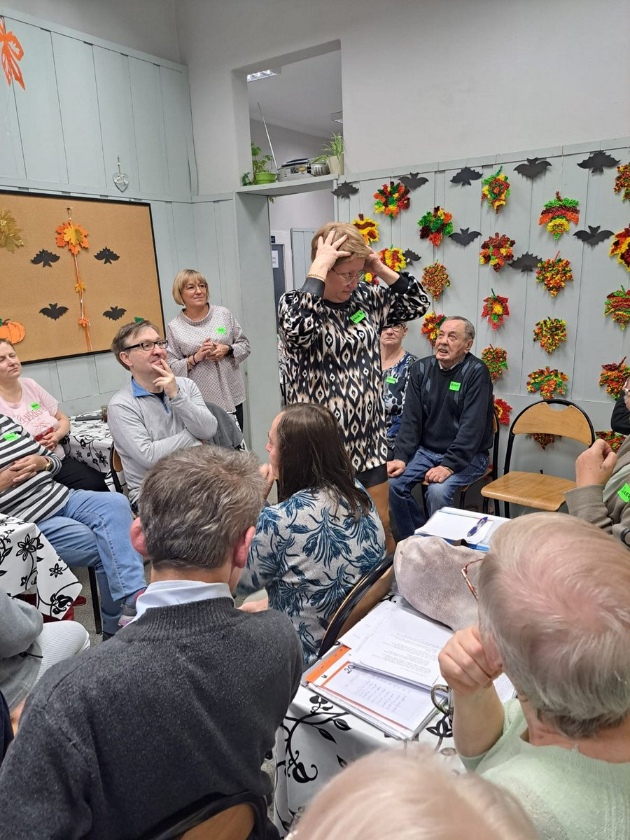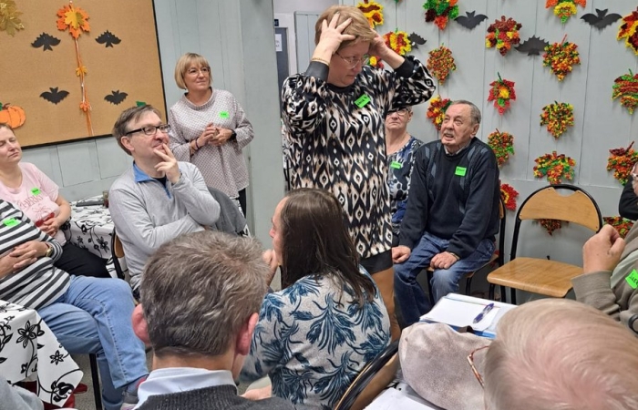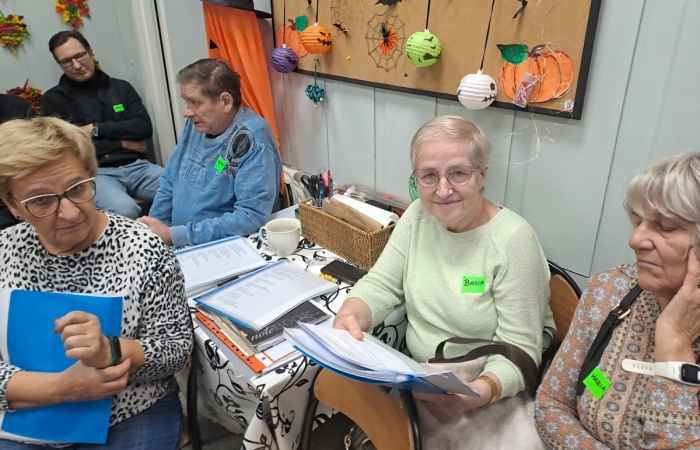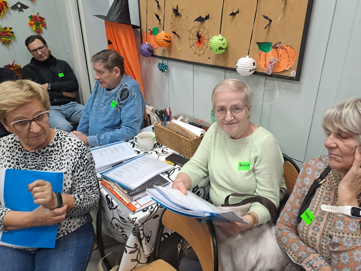 A u nas się działo… Gościliśmy grupę uczestników Kluby Transformacji w Sosnowcu , z Konstantynowa. Były wspólne śpiewy z akompaniamentem gitary w wykonaniu Pana Wojtka. Zaśpiewani, wyśpiewani uraczyliśmy się kolorowymi, trzęsącymi ;-) i owocowymi galaretkami, był czas na wypicie kawki, wspólne rozmowy. A potem było dużo śmiechu i ruchu kapitanów dwóch mieszanych drużyn, a wszyscy odgadywali hasła kalamburów. Było głośno, radośnie i wesoło. Wszystkim się podobało i chcą kolejnego spotkania. Na koniec moc uścisków i słów do zobaczenia.