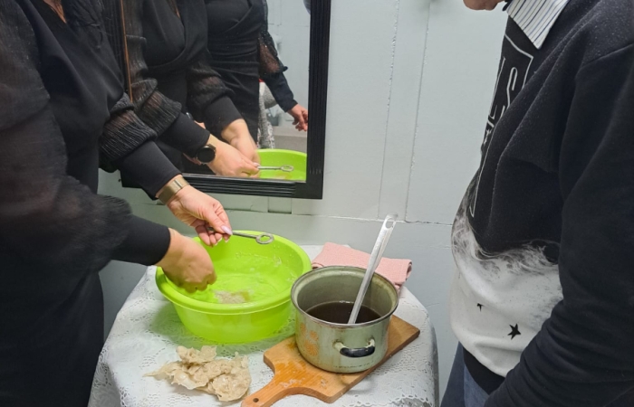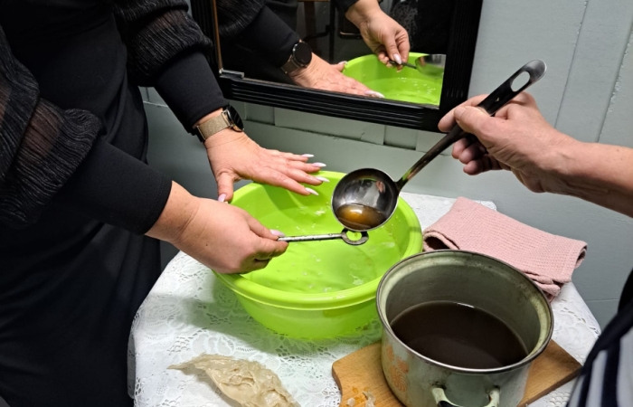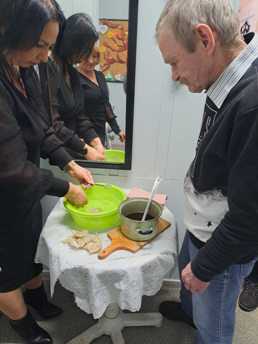 Oj działo się, działo…. Wróżka Esmeralda wróżyła, przepowiadała najbliższą przyszłość… Były wróżby kubeczkowe, kwiatowe oraz lanie wosku… Były tańce, hulańce, śpiewy … Dużo tańcowania, parami, solo, kołeczkami .. Ruch najlepszy… A do tego śpiew… Zabawa Andrzejkowa na 102.