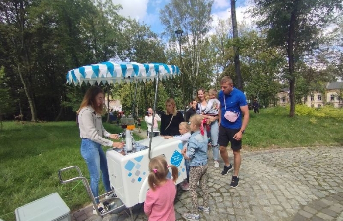 Pogoda dopisała i co najważniejsze, goście i humory także. Już od godziny 10 na uczestniczki i uczestników czekały kiełbaski z grilla, słone i słodkie przekąski, nie zabrakło uwielbianej przez dzieci waty cukrowej, popcornu a także pysznej wody z saturatora serwowanej przez Miejskie Przedsiębiorstwo Wodociągów i Kanalizacji w Będzinie. Furorę zrobiły konkursy dla dzieci i ich opiekunów, śmiechu, zabawy i radości z fajnych nagród było naprawdę mnóstwo. Mega fajnym doświadczeniem dla wszystkich były warsztaty z tworzenia własnych koszulek, zaprojektowane i pomalowane samodzielnie według własnego wzoru koszulki będą bez wątpienia super pamiątką z mijających niestety wakacji