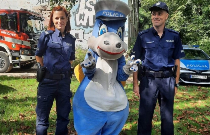Nie obyło się bez interwencji Policji, która dowiedział nas ze swoją przesympatyczną maskotką smoczycą Klarą, Klara spisała się na medal budząc salwy śmiechu wśród dzieci i dorosłych. Towarzyszący Smoczycy Klarze funkcjonariusze policji przekazali dzieciom wiele wskazówek i praktycznych porad dotyczących bezpieczeństwa na drodze, najmłodsi mieli okazję zobaczyć sprzęt i wyposażenie policyjne, każdy mógł bliżej poznać tajniki daktyloskopii a także usiąść za kierownicą policyjnego radiowozu.