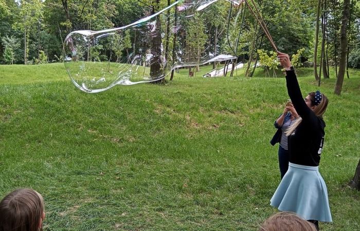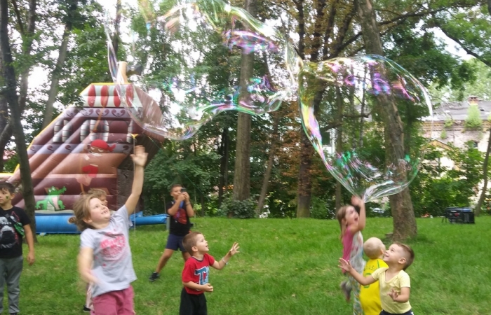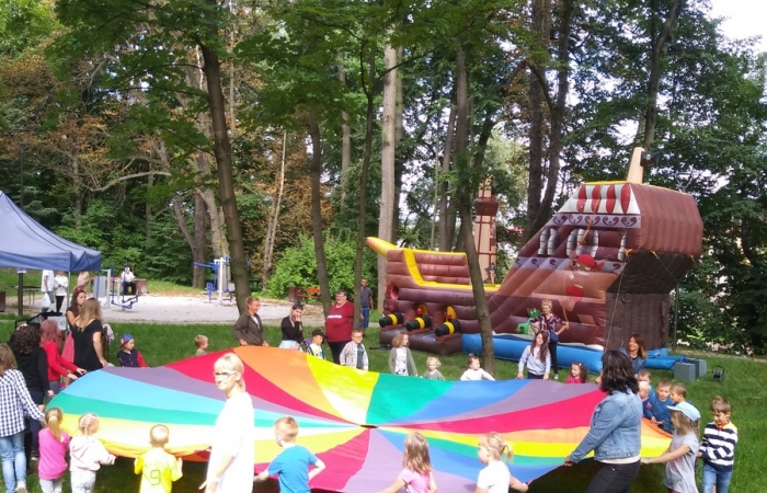 Już od godziny 10.00 w przepięknie zrewitalizowanej przestrzeni wokół jedynej takiej w Polsce wieży ciśnień na wszystkich czekały kiełbaski i kaszanka z grilla. Zabawy z chustą klanzy, tworzenie kolorowych bransoletek czy mini disco, to tylko niektóre z atrakcji pikniku przez który przewinęło się blisko 100 osób. Rodzice, dziadkowie oraz inni członkowie rodzin wraz z podopiecznymi mogli wykazać się wiedzą i kreatywnością podczas gry w Familiady .Pokaz wielkich baniek mydlanych zachwyciły i oczarowały wszystkich. Oczywiście nie byłoby dobrego pikniku bez bajecznych wzorów malowania twarzy, choć trzeba przyznać, że niekwestionowaną atrakcją był wielki, dmuchany statek piracki, który przyniósł dzieciom wiele wrażeń. Kolejny piknik rodzinny w ramach projektu RAZEM ŁATWIEJ odbędzie się 23 września. Już dziś zapraszamy wszystkich mieszkańców Grodźca.