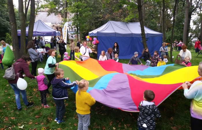 W czwartek 23 września br. w godzinach od 15:00 – 19:00 na zrewitalizowanym terenie przy wieży ciśnień w Grodźcu Będzinie odbył się piknik rodzinny w ramach projektu „Razem łatwiej – wsparcie społeczności lokalnej dzielnicy Grodziec poprzez rozwinięcie działalności Klubu Integracji Społecznej”. Projekt jest dofinansowany w ramach Regionalnego Programu Operacyjnego Województwa Ślaskiego na lata 2014 – 2020 (Europejski Fundusz Społeczny). Najmłodsi goście bawili się na dmuchańcu, korzystali z możliwości zrobienia sobie tatuażu oraz brali udział w konkursie na skonstruowanie ciekawej budowli ze słomek kreatywnych.