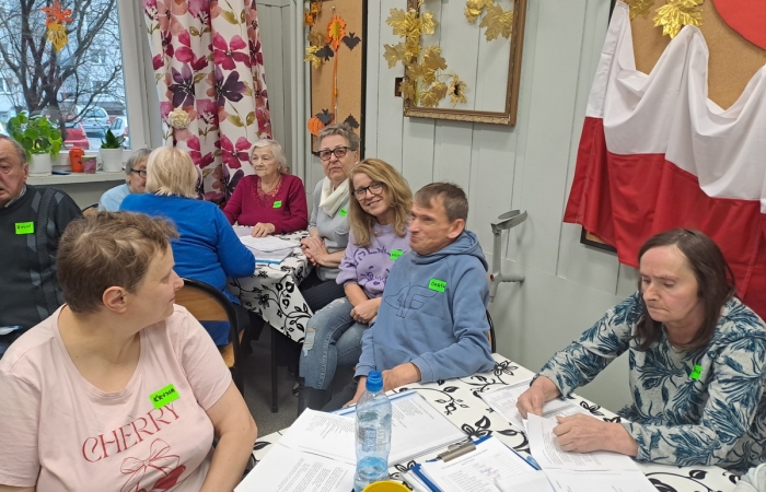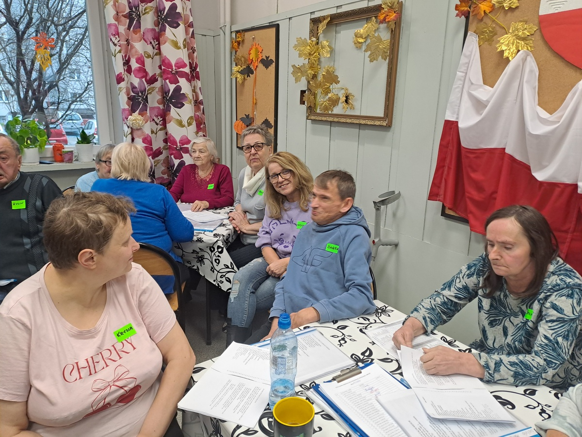 A u nas się działo… Gościliśmy grupę uczestników Kluby Transformacji w Sosnowcu , z Konstantynowa. Były wspólne śpiewy z akompaniamentem gitary w wykonaniu Pana Wojtka. Zaśpiewani, wyśpiewani uraczyliśmy się kolorowymi, trzęsącymi ;-) i owocowymi galaretkami, był czas na wypicie kawki, wspólne rozmowy. A potem było dużo śmiechu i ruchu kapitanów dwóch mieszanych drużyn, a wszyscy odgadywali hasła kalamburów. Było głośno, radośnie i wesoło. Wszystkim się podobało i chcą kolejnego spotkania. Na koniec moc uścisków i słów do zobaczenia.
