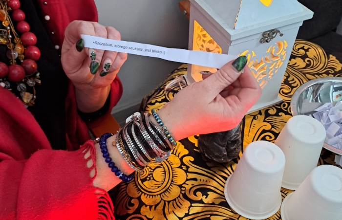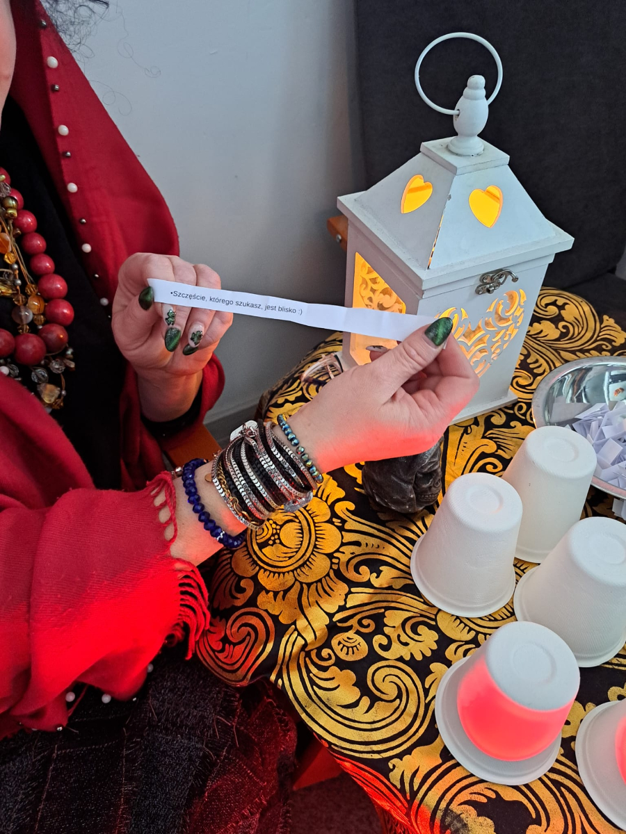 Oj działo się, działo…. Wróżka Esmeralda wróżyła, przepowiadała najbliższą przyszłość… Były wróżby kubeczkowe, kwiatowe oraz lanie wosku… Były tańce, hulańce, śpiewy … Dużo tańcowania, parami, solo, kołeczkami .. Ruch najlepszy… A do tego śpiew… Zabawa Andrzejkowa na 102.