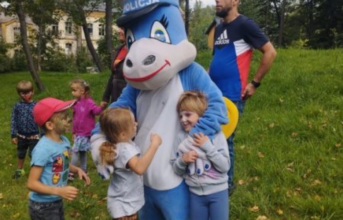 Nie obyło się bez interwencji Policji, która dowiedział nas ze swoją przesympatyczną maskotką smoczycą Klarą, Klara spisała się na medal budząc salwy śmiechu wśród dzieci i dorosłych. Towarzyszący Smoczycy Klarze funkcjonariusze policji przekazali dzieciom wiele wskazówek i praktycznych porad dotyczących bezpieczeństwa na drodze, najmłodsi mieli okazję zobaczyć sprzęt i wyposażenie policyjne, każdy mógł bliżej poznać tajniki daktyloskopii a także usiąść za kierownicą policyjnego radiowozu.