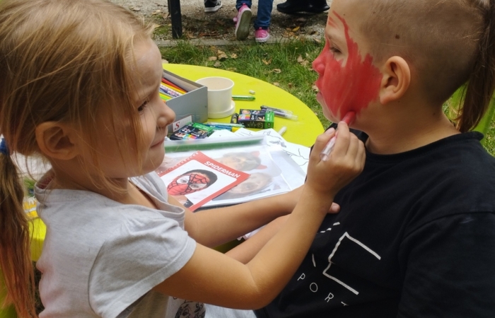 Pogoda dopisała i co najważniejsze, goście i humory także. Już od godziny 10 na uczestniczki i uczestników czekały kiełbaski z grilla, słone i słodkie przekąski, nie zabrakło uwielbianej przez dzieci waty cukrowej, popcornu a także pysznej wody z saturatora serwowanej przez Miejskie Przedsiębiorstwo Wodociągów i Kanalizacji w Będzinie. Furorę zrobiły konkursy dla dzieci i ich opiekunów, śmiechu, zabawy i radości z fajnych nagród było naprawdę mnóstwo. Mega fajnym doświadczeniem dla wszystkich były warsztaty z tworzenia własnych koszulek, zaprojektowane i pomalowane samodzielnie według własnego wzoru koszulki będą bez wątpienia super pamiątką z mijających niestety wakacji