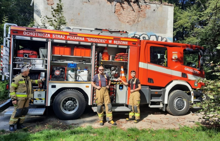 Strażnicy miejscy każdemu uczestnikowi i uczestniczce pikniku wręczyli odblaski, które na pewno pozytywnie wpłyną na bezpieczeństwo mieszkanek i mieszkańców Będzina. Nasz „mundurowy” piknik nie mógłby odbyć się oczywiście bez dzielnych Strażaków z OSP Grodziec, którzy udostępnili nam w tym dniu swój radiowóz i zaprezentowali najmłodszym czym jest praca strażaka i z jaką odpowiedzialnością wiąże się ta służba społeczności lokalnej.