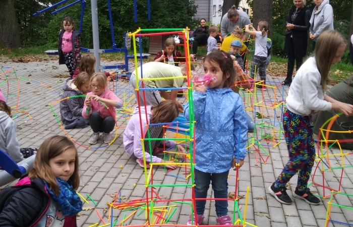 W czwartek 23 września br. w godzinach od 15:00 – 19:00 na zrewitalizowanym terenie przy wieży ciśnień w Grodźcu Będzinie odbył się piknik rodzinny w ramach projektu „Razem łatwiej – wsparcie społeczności lokalnej dzielnicy Grodziec poprzez rozwinięcie działalności Klubu Integracji Społecznej”. Projekt jest dofinansowany w ramach Regionalnego Programu Operacyjnego Województwa Ślaskiego na lata 2014 – 2020 (Europejski Fundusz Społeczny). Najmłodsi goście bawili się na dmuchańcu, korzystali z możliwości zrobienia sobie tatuażu oraz brali udział w konkursie na skonstruowanie ciekawej budowli ze słomek kreatywnych.